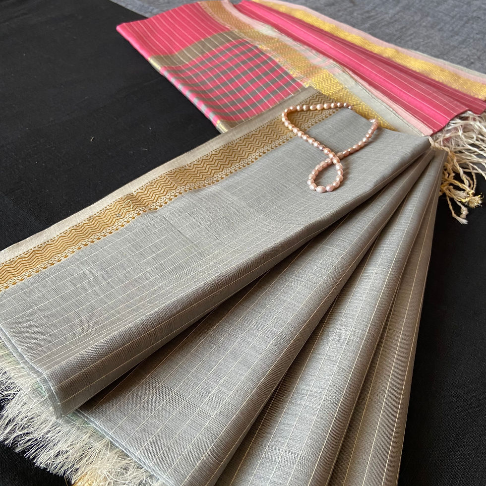 Grey and Baby Pink Cotton Silk Maheshwari Handloom Suit with Zari Border